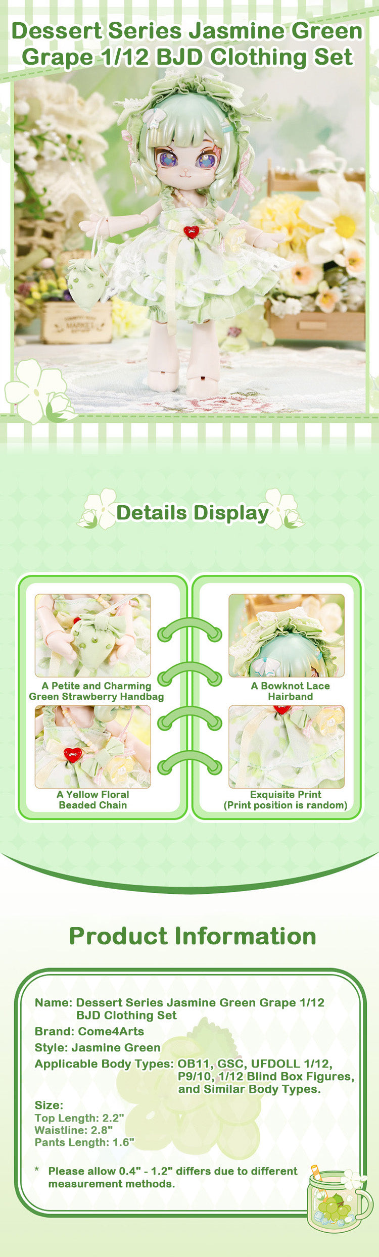 Dessert Series Jasmine Green Grape 1/12 BJD Clothing Set