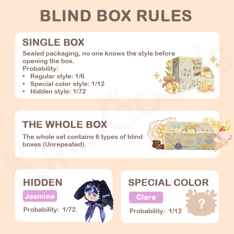 【No Box】indicates that the blind box products are sold without the original packaging box. Each item includes a doll packaged in a sealed bag, along with an identity card.