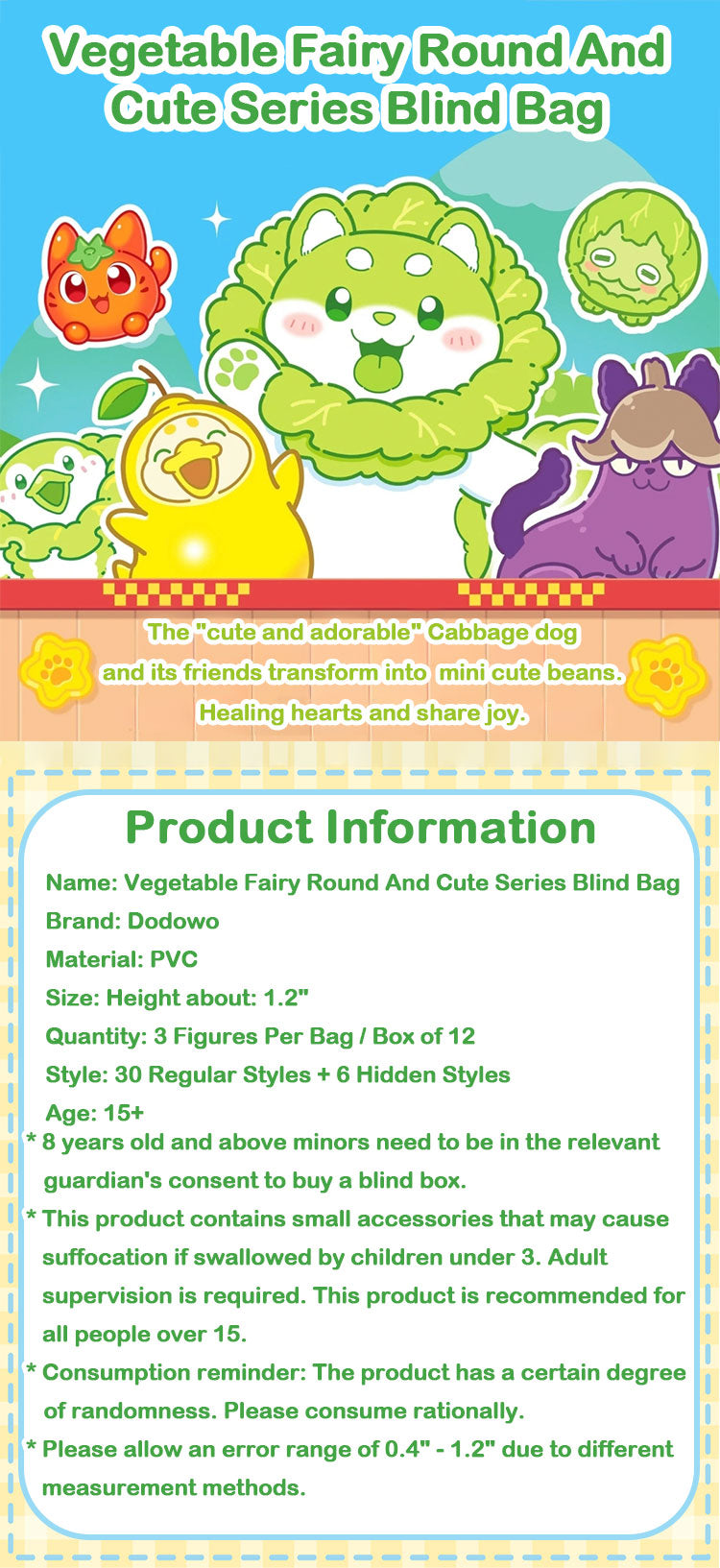 5. Buying Tips: Due to the special feature of this blind box, the brand assembles the styles based on the total production quantity. If you purchase multiple blind boxes at once, or buy the same blind box product in multiple orders, you might receive repeated figures, which is normal and not covered by after-sales services. Thanks for understanding.